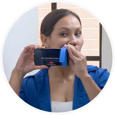 When you begin a scan, the app will ask you to hold your phone sideways. Stand in front of a mirror, place the scope in your mouth, and follow the instructions to complete your scan.